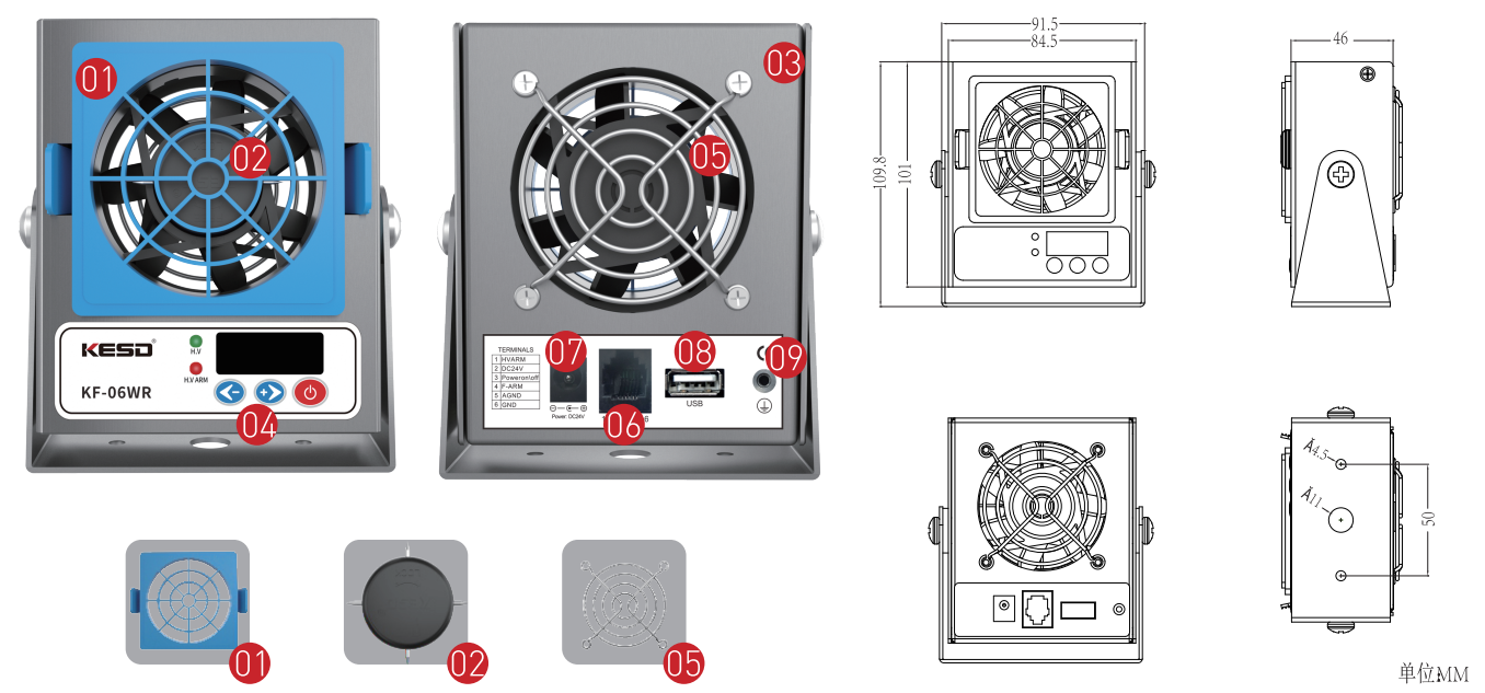 采用直線網格型風窗,使吹出的風具有直線性,增強除靜電效果。可靈活拆卸,便於護保養。 (可作配件單獨選購) |