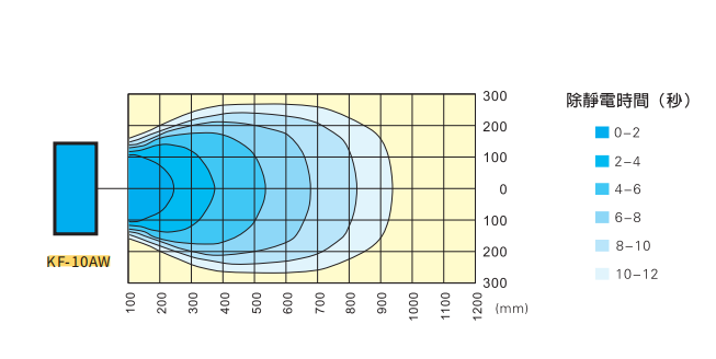 3.距離吹風口中央的除電特性。