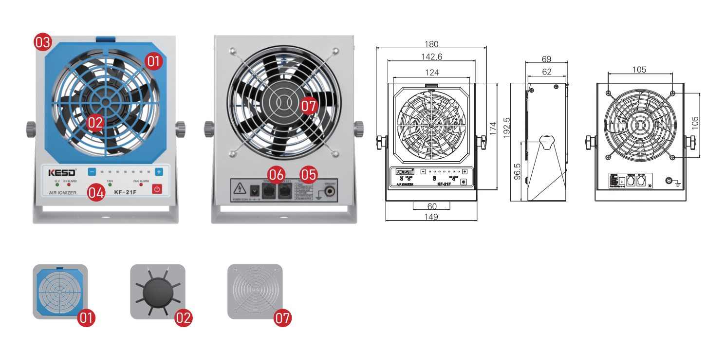 | 距離 | 除靜電時間(正/負) | 離子平衡(正/負) | ![]() |