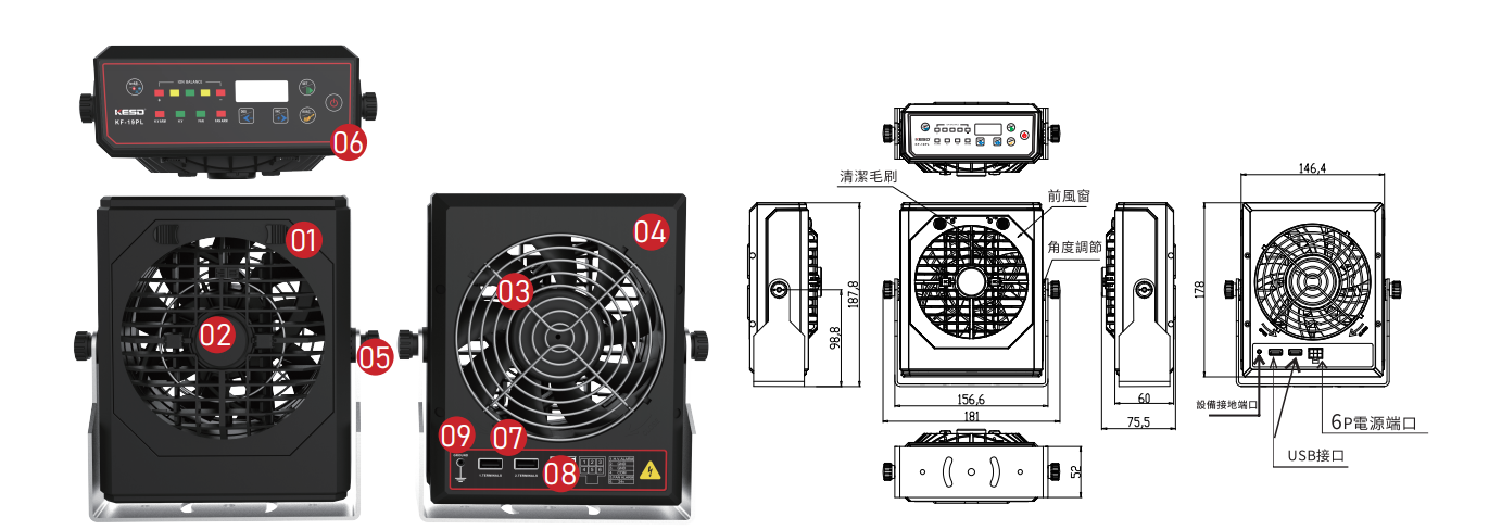 | 備詿: 1. 测量方式為:使用TREK-156A靜電消除平板檢測儀,按本公司測量方法進行測量。 2.除静電時間是指後風窗在未安装過濾網且風量最大時,從士1000V-土100V為止的衰減時間。時,從士1000V-土100V為止的衰減時間。 3.距離吹風口中央的除電特性。 |