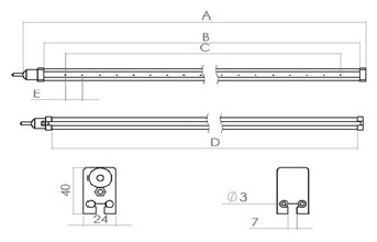 型號 | 總長A(mm) | 有效寬度B(mm) | 電極長度C(mm) | 安装距離D | 電極間距E |